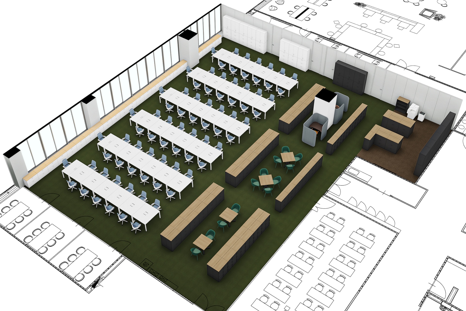 [オープンスペースを活かした明るく働きやすいオフィス(イメージ)]
