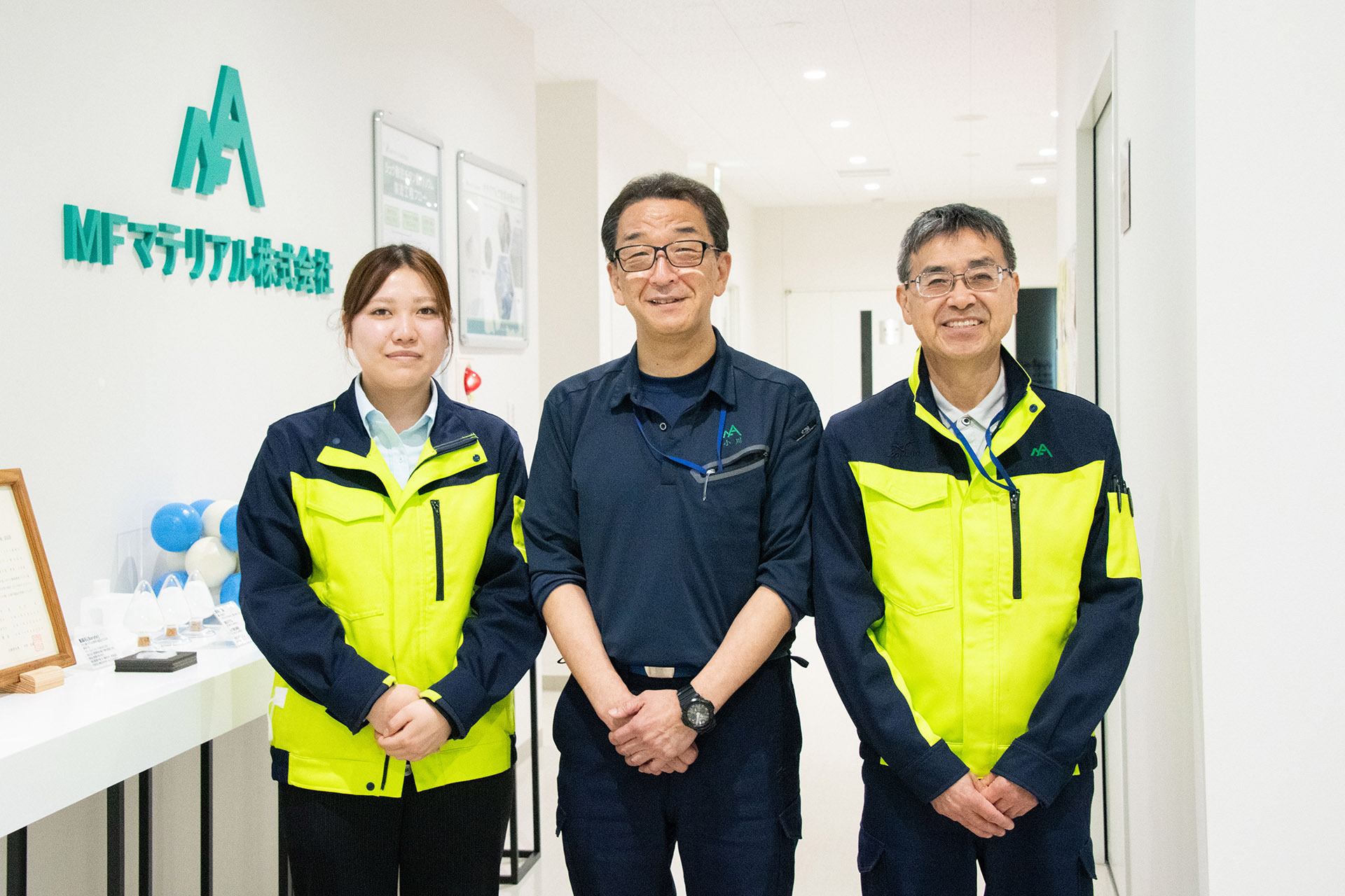 [小川生産本部長とMFマテリアルの社員たち]