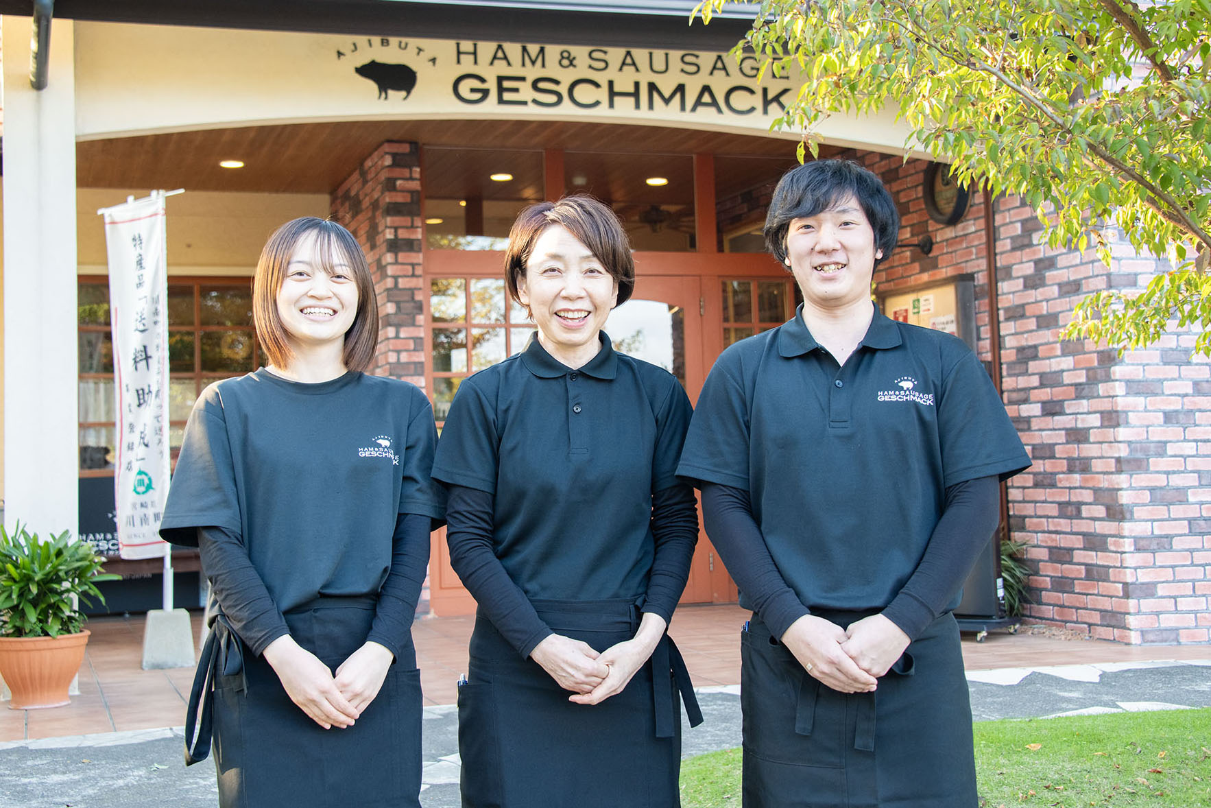 「ゲシュマック」はドイツ語で「味覚」のこと。当社は何よりも味覚を大切にしています。ゲシュマックでは直営農場で育てた“あじ豚”(平成21年度天皇杯受賞)を使った、ハム・ソーセージ、お惣菜の加工・販売、レストランの営業を行っております。